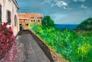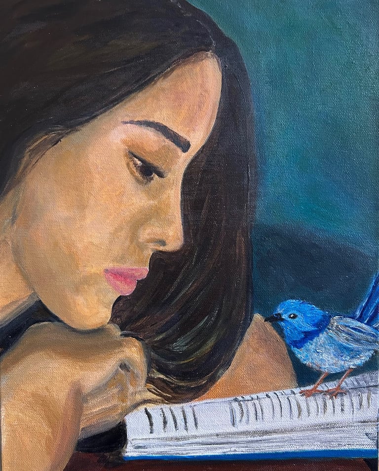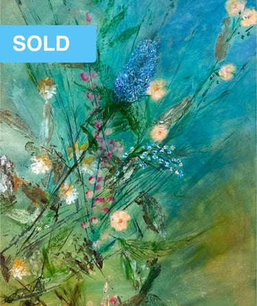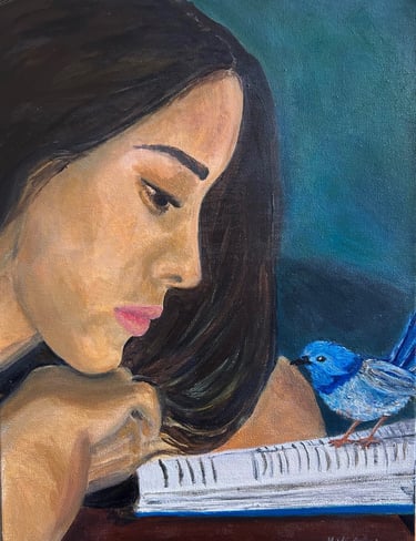 I enjoy painting what tugs at my curiosity—bright birds and flowers, soft landscapes, little moments that make me pause.